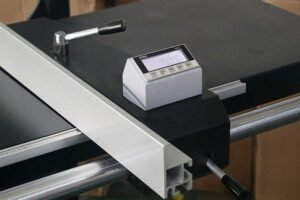 Управління паралельним упором здійснюється через PLC контролер. Привід реалізовано від сервомотора DELTA TAIWAN, високоточної кулько-гвинтової пари та лінійної напрямної. Точність позиціонування складає менш ніж 0,01 мм.