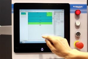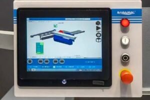 Система управління з промисловим комп’ютером на базі Windows, та TOUCH SCREEN монітором 12”. З пульта є можливість вмикати/вимикати основну та підрізну пилки, регулювати висоту вильоту та кут нахилу пилок, а також керувати паралельним упором. Програмне забезпечення дозволяє створювати карти розкрою та бачити симуляцію розкрою плити.