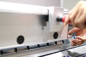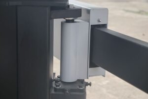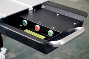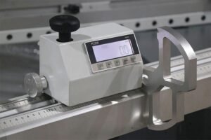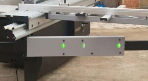 Управління паралельним упором здійснюється через PLC контролер. Привід реалізовано від сервомотора DELTA TAIWAN, високоточної кулько-гвинтової пари та лінійної напрямної. Точність позиціонування складає менш ніж 0,01 мм.