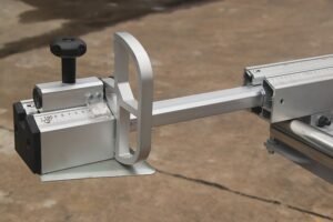 Обладнана двома відкидними упорами для швидкого та точного налаштування на необхідний розмір. Оснащена лінійками з гравірованими шкалами та лупою. Завдяки телескопічній лінійці довжина сягає 3700 мм.